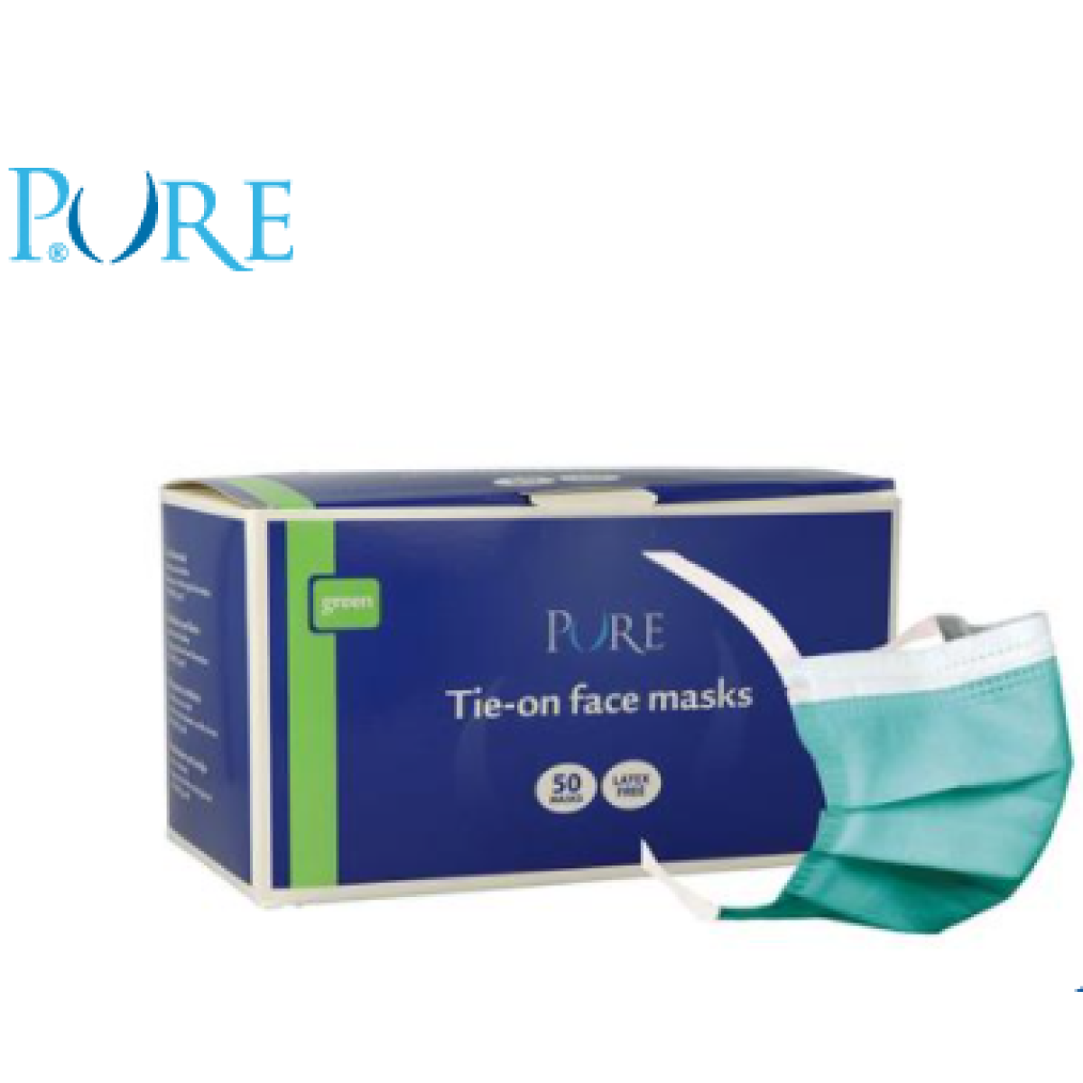 PURE face mask latex-free type IIR to tie - green - 1 x 50 pieces