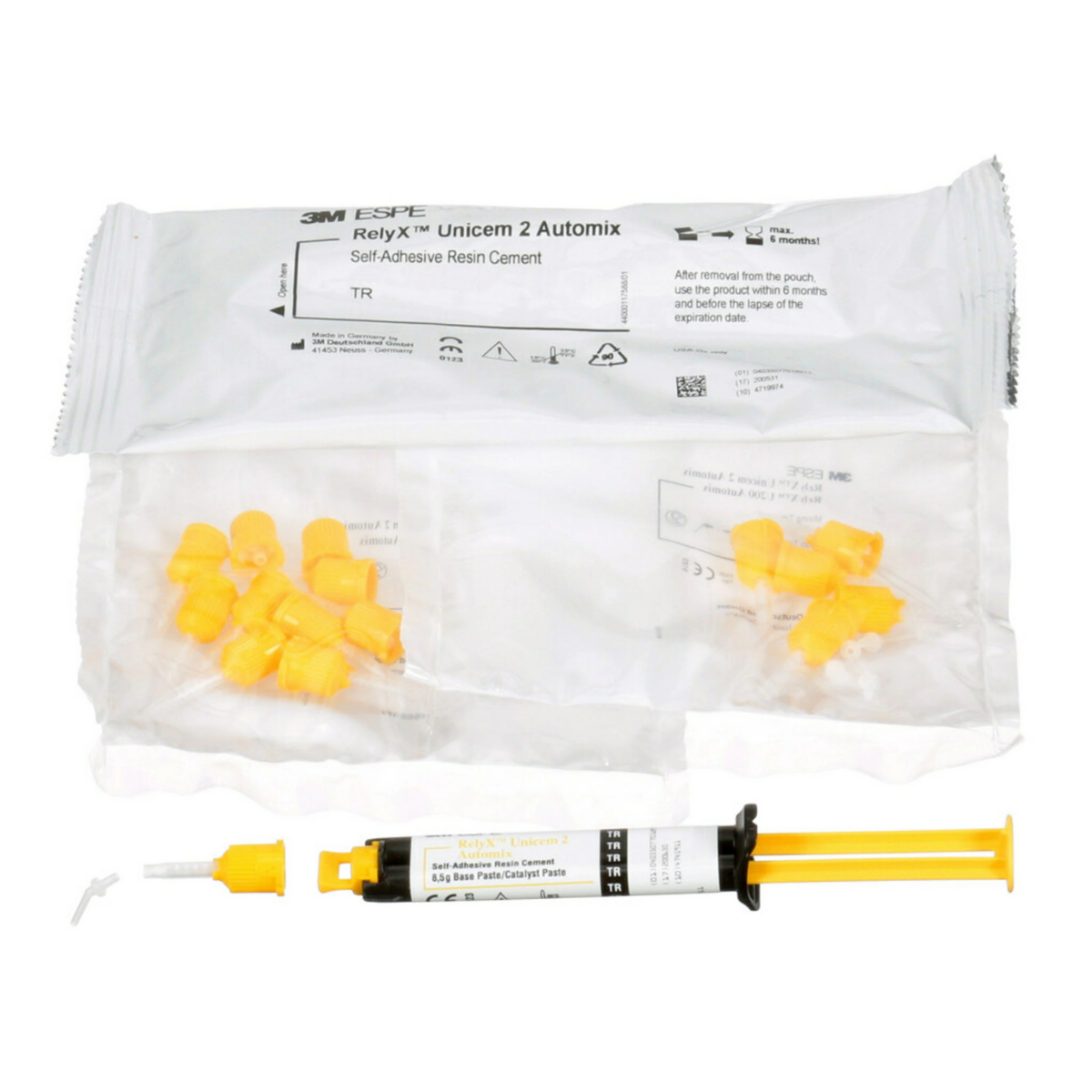 With its high bonding values, the 3M RelyX Unicem 2 self-adhesive composite cement enables reliable and convenient cementing of inlays, onlays, crowns and bridges, as well as other indications such as Maryland and onlay bridges. The practical automix syringe format offers easy handling, flexible dosing and optimal consistency for application and bonding.