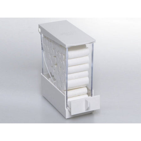 By pulling out the drawer, 2-3 cotton rolls are dispensed, the rest remain protected from spray mist and dust. The dispenser is suitable for standard cotton rolls of sizes 1, 2, 3 and 4 as well as for Luna for kids.