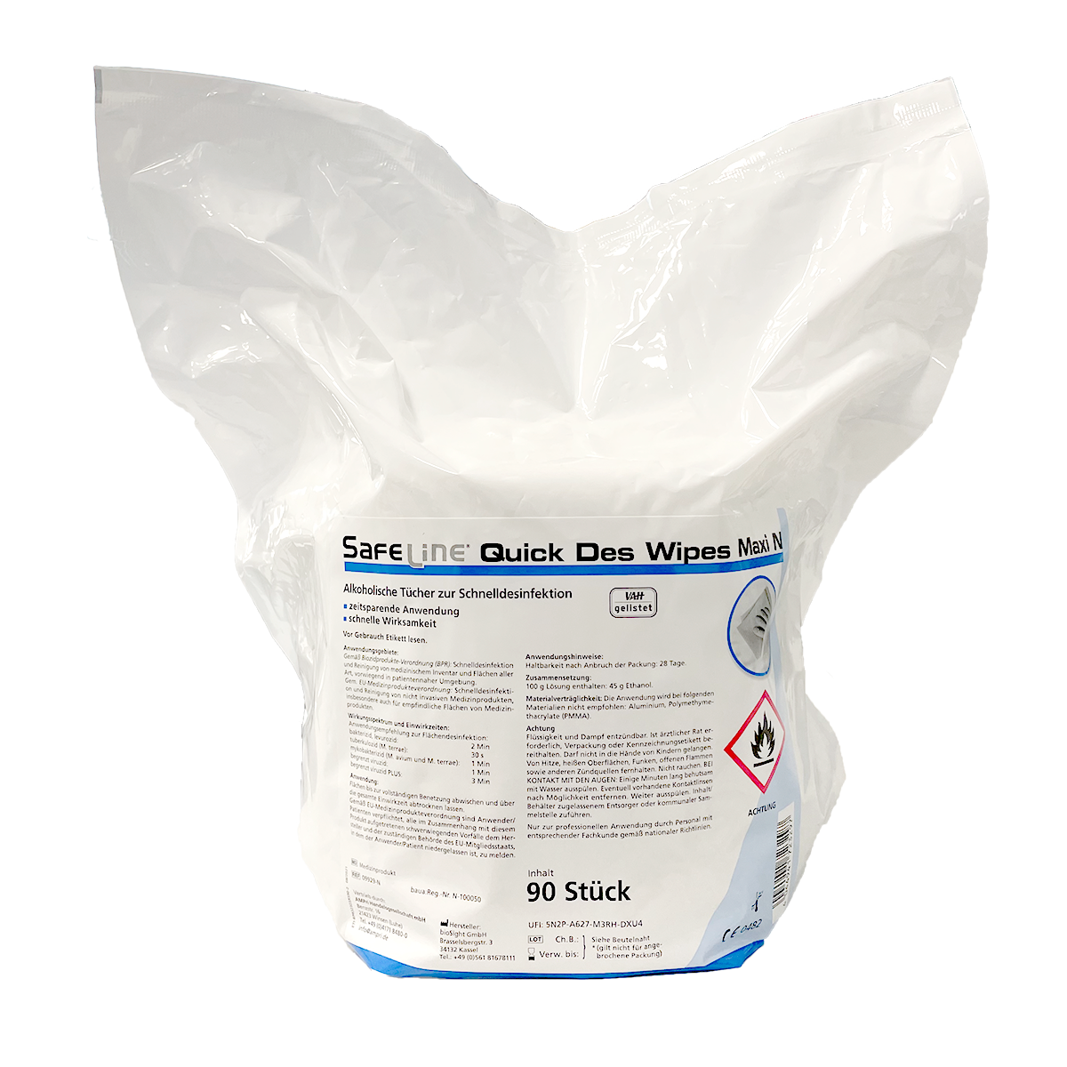 SAFELINE Quick Des Wipes Maxi - Disinfectant wipes, refill bag, 90 wipes