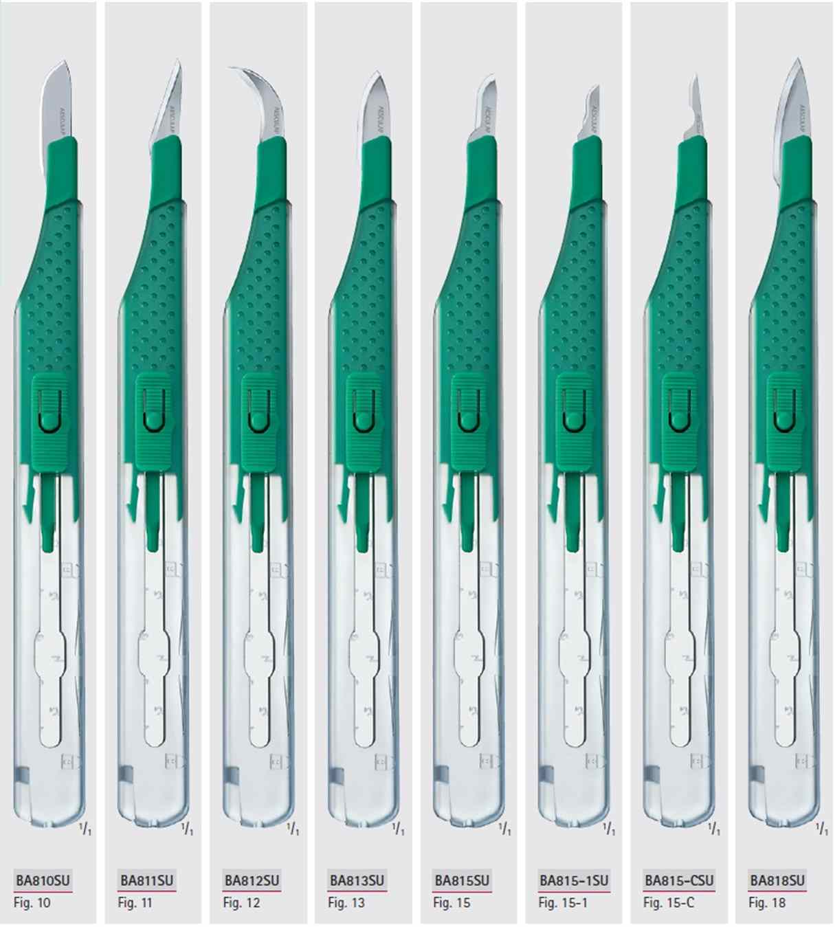 With Aesculap safety scalpels, the risk of puncture injuries when handling the scalpels is minimized. They therefore comply with the current legal requirements for occupational safety.