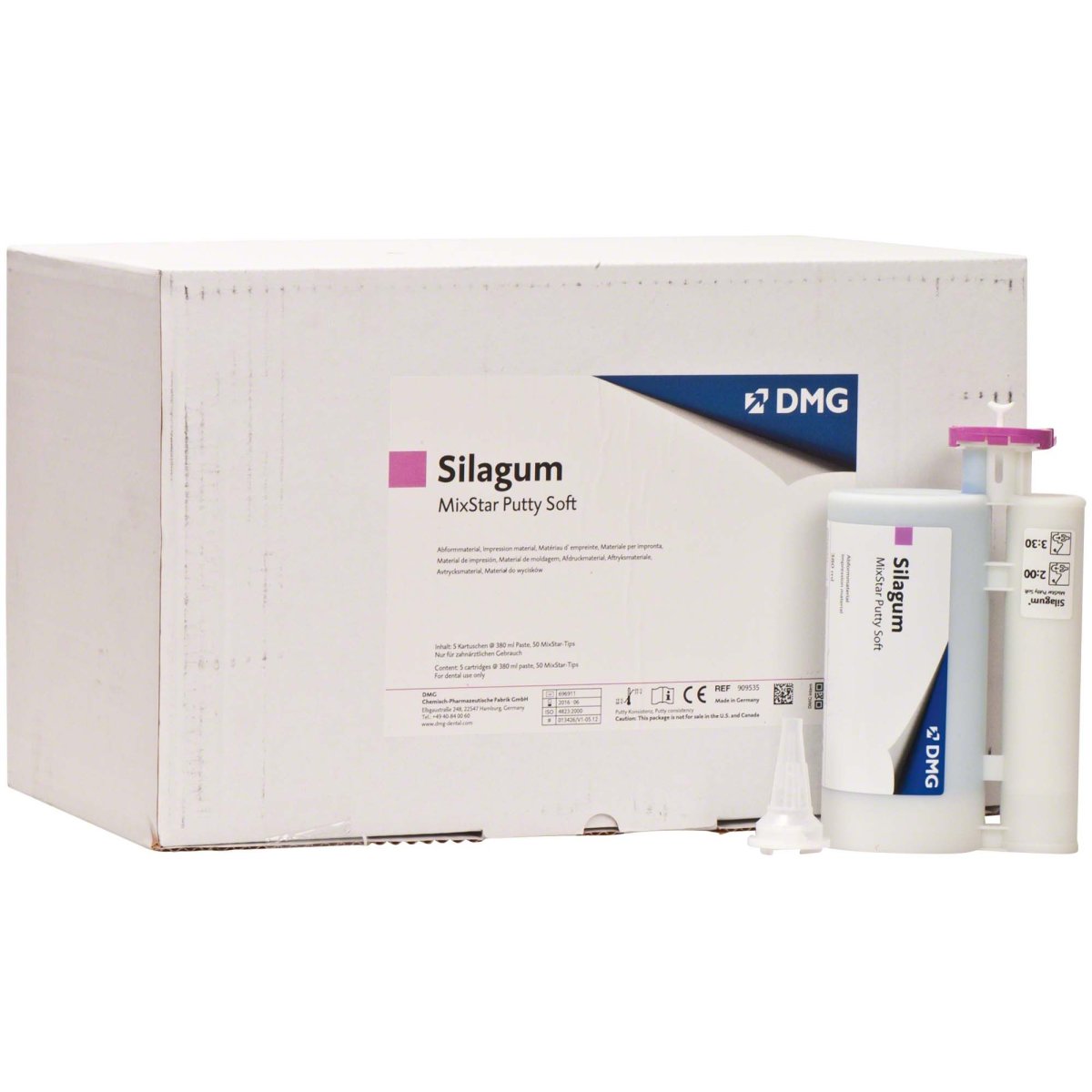 Silagum MixStar Putty Soft, pre-impression material, 5 double cartridges of 380 ml each
