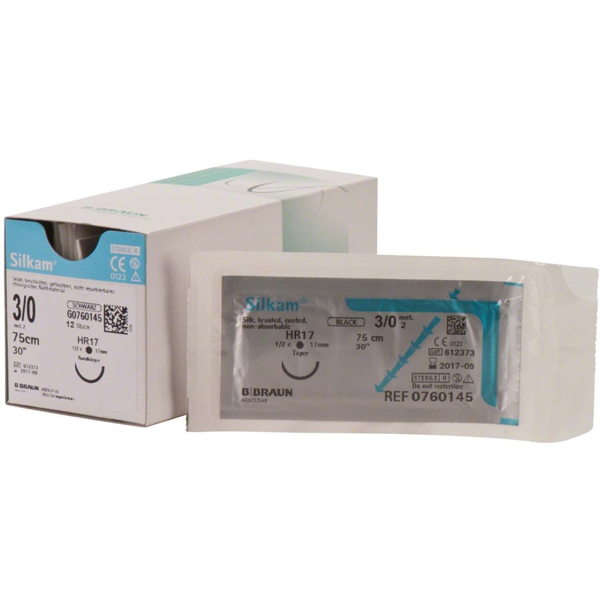 Silkam, HR 17, USP 3-0, 75 cm, ? 17 mm, black, pack of 12 films