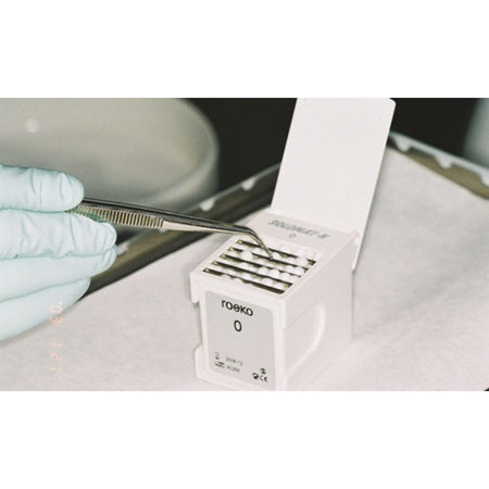 pellet dispenser made of plastic. For individual removal of cotton balls, etching pellets or foam pellets. With practical refill system. Stable - autoclavable up to 134 °C. The cotton balls are pushed manually to the removal area.
