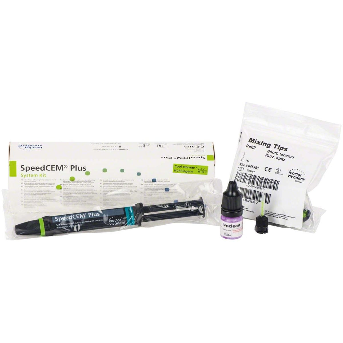 SpeedCEM Plus is a self-adhesive, self-curing composite cement with optional light curing. It offers the optimal combination of performance and ease of use and, with its optimized formulation, is particularly suitable for restorations made of zirconium oxide, metal-ceramic and for cementing restorations to implant abutments.