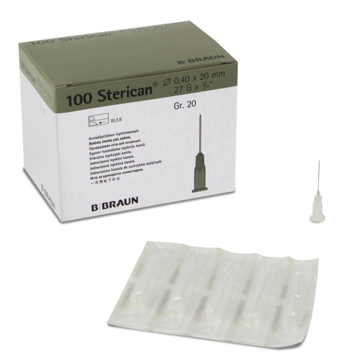 Sterican Luer, disposable cannulas, size 20, G 27 × 3/4", ? 0.40 × 20 mm, grey, pack of 100