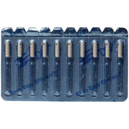Flexible teeth are arranged spirally around the conical core. Their size corresponds to 1/2 of the core diameter. They are so stable that they cannot break off in the root canal if used properly.