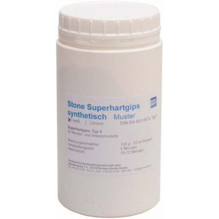 Sample 1 kg super hard plaster white For the production of all master and working models that need to fit precisely and withstand high mechanical stress. To ensure that crystallization is not disturbed, the cast impression must no longer be vibrated. Class 4. Smooth, scratch-resistant surfaces Hard, edge-stable models Always consistent quality Minimal expansion
