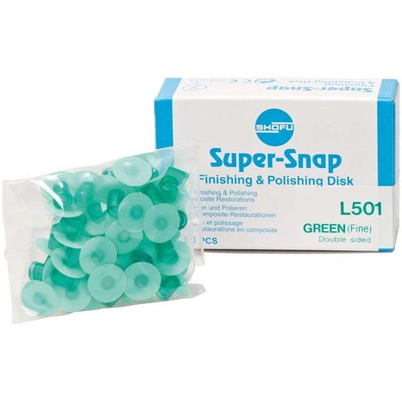 < li>Four grits for contouring, finishing and polishing to a high gloss of composite restorations - Polishing: Super-Snap disc green (fine grit)