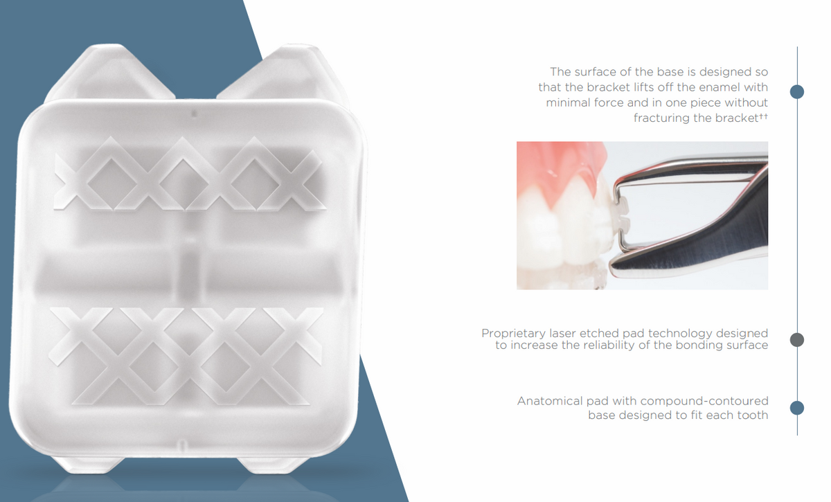 - Anatomical pad design with reinforced contoured base adapts to every tooth