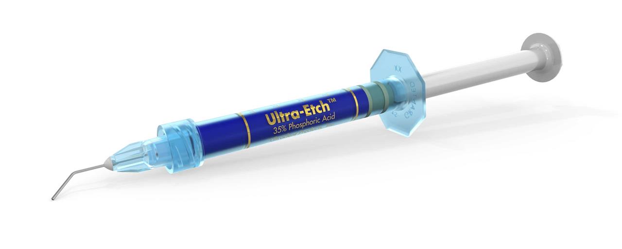 Ultra-Etch 35% etching gel for enamel and dentin, viscous 35% phosphoric acid. The only etching gel with self-limiting properties: To achieve a constant etching depth in the dentin, thus practically no sensitivity after bonding. Optimal consistency, targeted application with the Blue Micro Tip or the Inspiral Brush Tip. Increased capillary effect and easy rinsing due to the wetting agent content in the distinctly blue-colored gel.