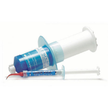 Ultra-Etch IndiSpense is an etching gel for enamel and dentin, with viscous 35% phosphoric acid. The only etching gel with self-limiting properties: To achieve a constant etching depth in the dentin, thus practically no sensitivity after bonding. Optimal consistency, targeted application with the Blue Micro Tip or the Inspiral Brush Tip. Increased capillary effect and easy rinsing due to the wetting agent content in the distinctly blue-colored gel. Small 1.2 ml empty syringes can be filled quickly and cleanly for application from the 30 ml IndiSpense syringe.