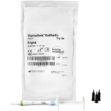 Variolink Esthetic is the aesthetic light- and dual-curing luting composite for the permanent integration of ceramic and composite restorations. For the permanent luting of glass ceramic, lithium disilicate glass ceramic and composite restorations (inlays, onlays and veneers). Only for restorations with low material thickness. Variolink Esthetic impresses with its exceptional aesthetics and very user-friendly processing.