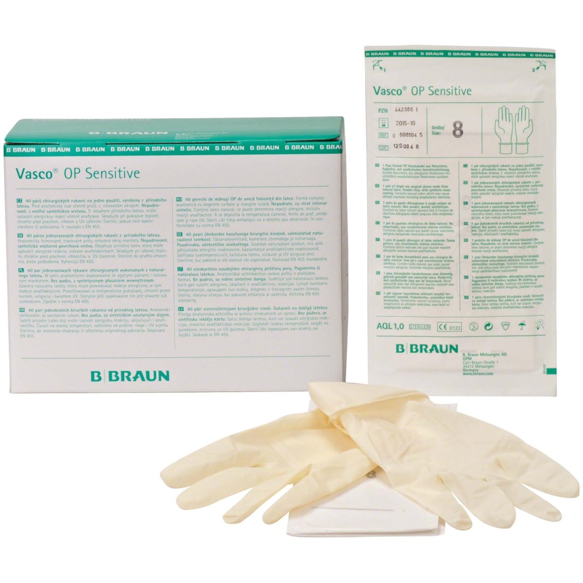 Vasco OP Sensitive surgical gloves, powder-free, size 8.0, pack of 40 pairs