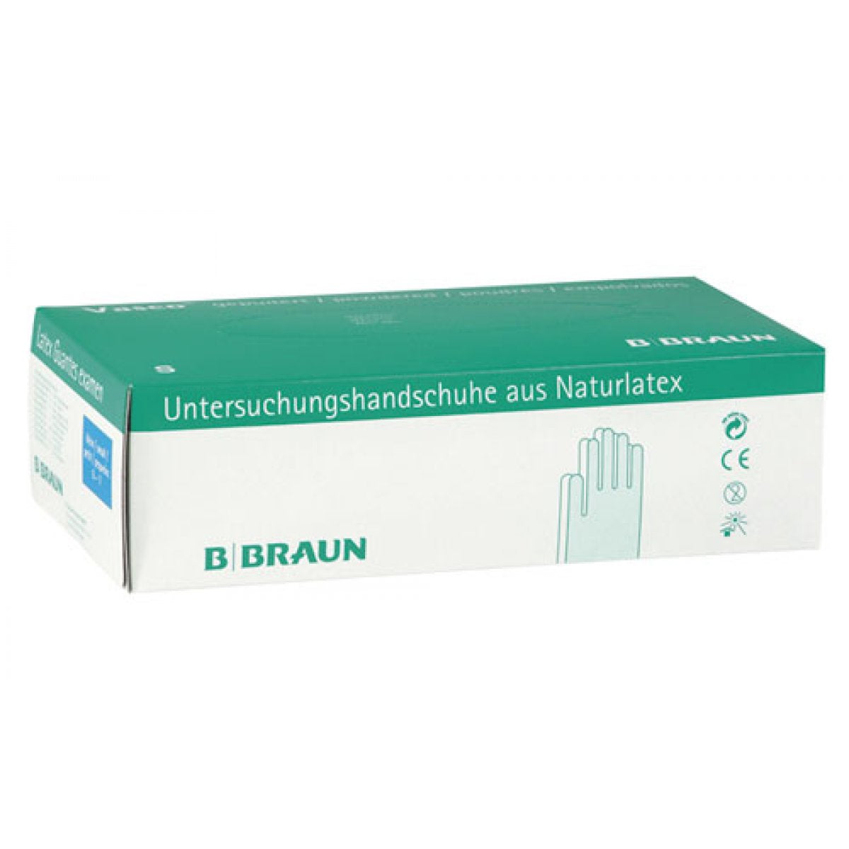Non-sterile, powdered examination gloves made of soft, seamless latex. With rolled cuff, fits left and right. Complies with DIN EN 455. Thiuram-free.