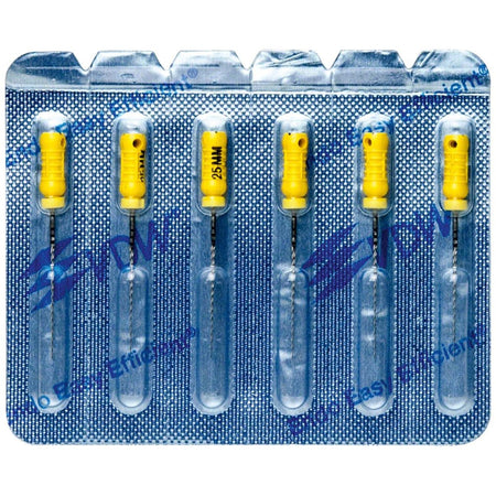 VDW Sterile K drills, 25 mm, ISO 20, yellow, pack of 6 pieces