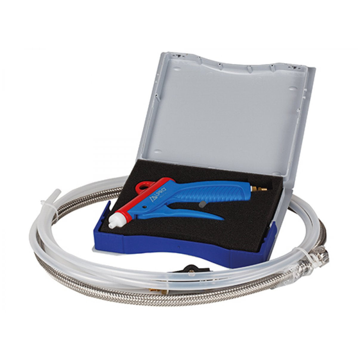 The "WaterJet" rinsing device with integrated water pressure limiter is used for pre-rinsing and assists in cleaning before further processing of the external and internal surfaces of dental transfer instruments and general instruments.